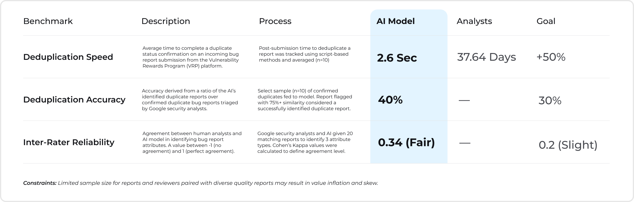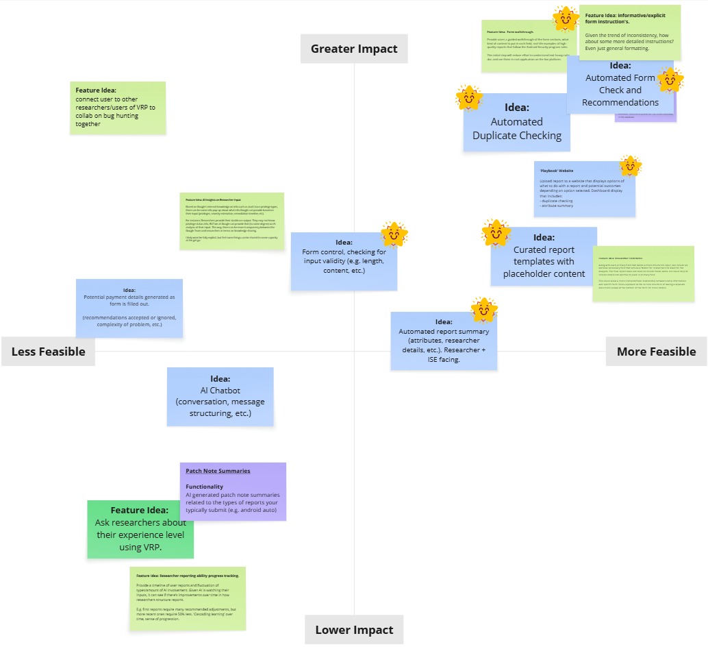 This process allowed the team to dynamically prioritize ideas, identify constraints, and ensure our next steps provided high impact to Bug Reporters and Android Security stakeholders.