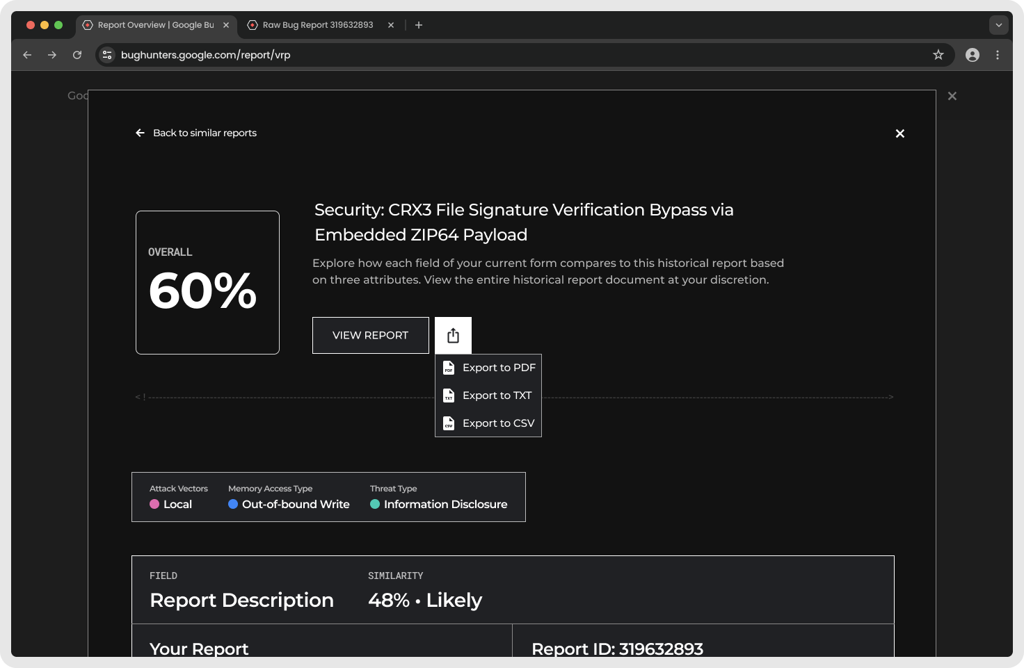 My concepts focused on enhancing the existing VRP form through clearer guidance and progress tracking, supported by AI-driven insights that help reporters understand the novelty and quality of their submissions.
