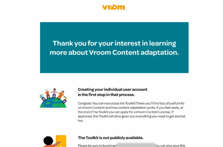 Bezos Family Foundation, has grown to support millions of global families since its 2014 launch. With insufficient, static, and out of date material, a revamp of Vroom's content adaptation toolkit was essential to ensure an intuitive and engaging adaptation process for a larger, more diverse user base.